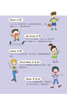 會話部分則是以美國小孩為主的常用對話,本書精心塑造出幾位小學生、一個家庭、和學校老師,在60個逼真場景中都有維妙維肖的角色聲音扮演,以正常速、慢速與中文一句一句引導,讓金字塔學習法立刻活用在生活中。