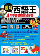《圖解西語王─4天學會基礎西班牙語》精選的學習內容,是根據西班牙語學習者的需要以及和西班牙人交流的經驗,把學習西班牙語時最基本、最重要的內容加以挑選提煉。全書彙集了學西班牙語所需掌握的「基礎發音」、「基本詞彙」、「基本文法」、「常用句子」、「常用對話」,搭配最趣味的圖片,簡單易學讓所有學習者都可以快樂學西班牙文,輕鬆說西班牙語,奠定基礎西班牙語。