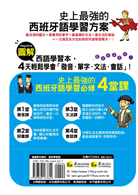 《圖解西語王─4天學會基礎西班牙語》內容詳細介紹、解釋及精闢解析所有基礎西班牙語學習必備的學習的內容。完整的學習進度,循序漸進、由簡入難,絕對適合開啟西班牙語入門學習的第一步。不論是在家自學或是準備考試、出國旅遊,本書內容都可以滿足各個學習者的西班牙語學習需求,讓所有學習者都可以學習到最準確最道地的西班牙語。
