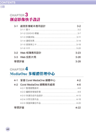 涵蓋主題從基本的影像設計概念開始,逐步於每章一一介紹PhotoImpact的應用技巧與功能,如數位相片編修、MediaOne多媒體管理、廣告DM、活動海報、名片、網頁動態特效、2D創意賀卡、3D立體繪圖造型…等。