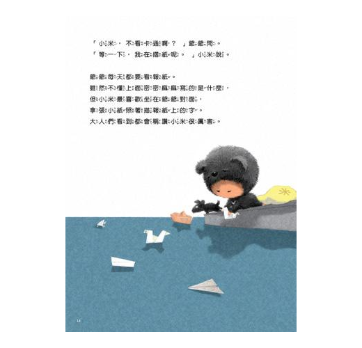 但我覺得這樣低估了孩子的能力,孩子需要的不只是可口,還有要營養。而這本《小米有個小袋子》證明了表面看似簡單,內在卻豐富的創作觀;也展現了簡單卻豐富、不說卻說更多的可能。