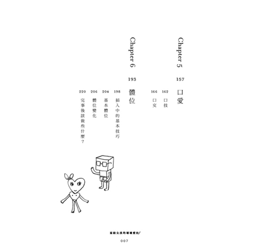 性愛,是一種溝通與交流。如果對方是妳心愛的人,如果妳為對方、為自己所做的,能讓雙方都感受到愉悅,那又有何不可呢?無論妳是對性愛感到好奇、惶恐卻無從學習的女孩;或是希望能更了解自己的身體、開發出更多性感帶的女孩;還是希望能透過性愛,與另一半獲得更多愉悅與交流的女孩,這都是一本妳應該擺在床頭的教戰手冊。本書最後的「性愛煩惱Q&A」當中,對於正確的避孕方式也有清楚的解釋與教學。