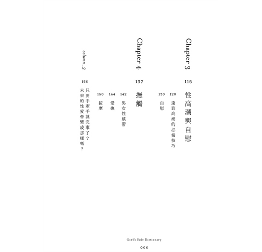 那麼,女孩們呢?無論正確與否,當男孩們可以靠著相互討論、分享A片來獲得性知識時,亞洲文化圈中的女孩,便處在相對缺乏討論與接觸性知識的環境中。有人說,女人要到三十歲後才能真正理解性愛的愉悅。某個程度上說來,的確如此。除了與生俱來的身...