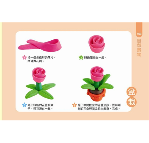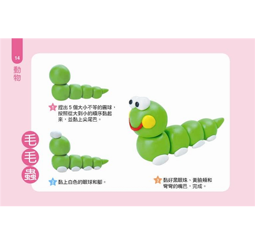 2.彩色圖示、分步驟學習:透過色彩豐富的圖示,分步驟教學,讓孩子可以很容易地一步一步跟著捏出各種造型。