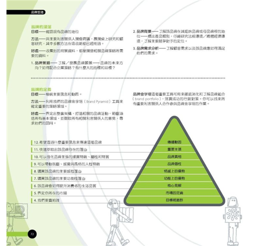 在消費者的感情和理智裡,好品牌是有生命的。品牌的完整性比新鮮感更能永續經營。品牌的生命或許始自於文件的規畫作業,但最終卻深植於人的感情與理智裡。品牌塑造是一門包羅萬象的學問,從獲取期到蟄伏期,一路串連起顧客的自然生命周期,是行銷人員的重要任務之一。