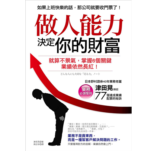 日本最大的證券公司-野村證券前董事 津田晃在20多歲時,也因為「賣不掉證券」而感到苦惱,直到他改變了心態之後,才開始出現了轉機。如果顧客一直看到他「只是想把東西賣出去」的樣子,一定不會買單。因此他把「賣掉!賣掉!我要把東西賣掉!」的心態轉變為:「不用一直想把東西賣出去也沒關係,業務不是賣東西,而是一種提供客戶解決方法的工作,因此只要獲得對方的信賴,對方自然會向我們購買。」