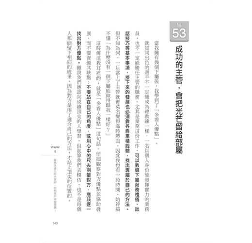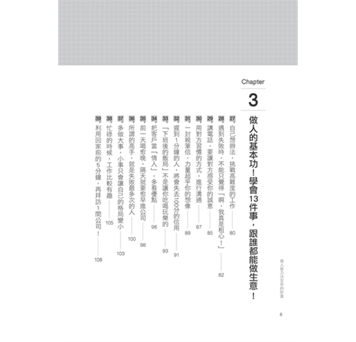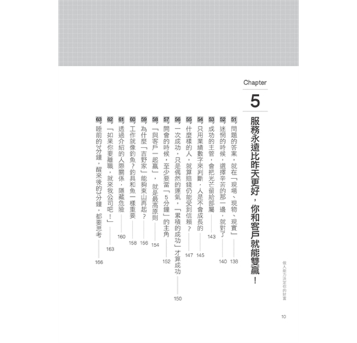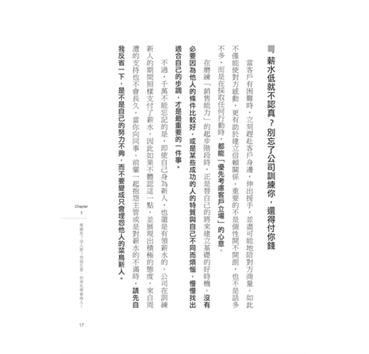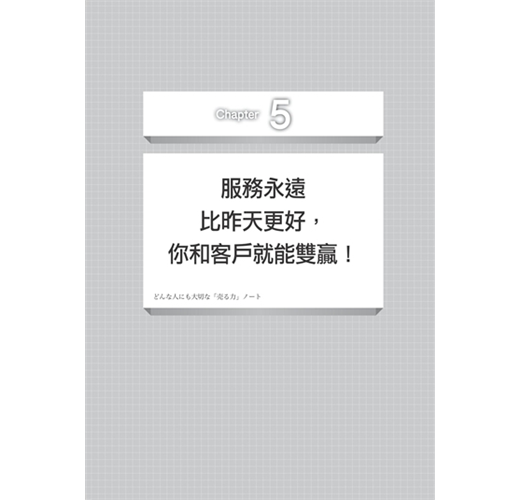 只要抱持這樣的心態,無論從事什麼工作都一定有人看得見;替我們加油的人也會越來越多。本書集結了我從二十多歲開始持續記錄至今的『備忘錄』。若本書能成為您職場人生的參考,將是我最大的榮幸。