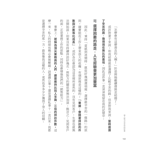 這麼想的那一瞬間,我的心情變得好輕鬆,頓時感到勇氣百倍,業務員的工作也變得快樂多了。
