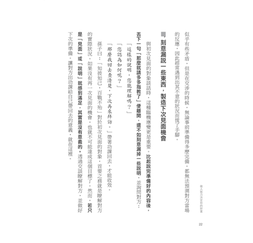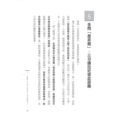 ◆這本書同時也是一本「人生突破指南」不論工作,人生也是如此。想讓同事主動幫忙你,想讓喜歡的人了解你,政治家想獲得人民投票。為了達到目標,每個人、每一天都在想辦法獲取他人信賴,或是讓別人喜歡自己,「讓別人信賴你」也是一種做人道理,更是任何人都應該具備的能力。