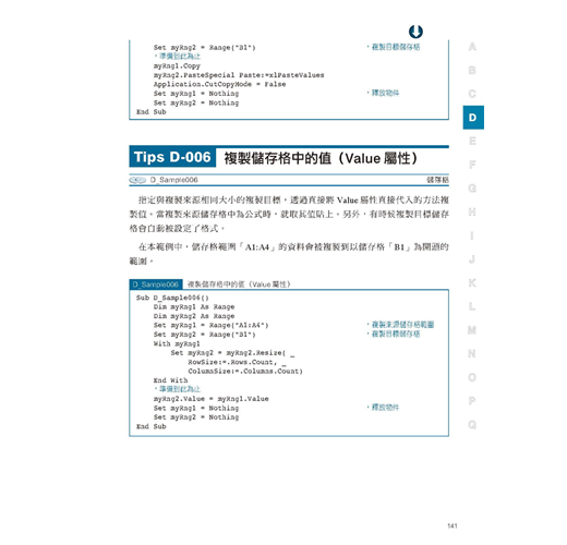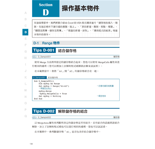 本書的程式碼包含不用多餘的程式碼、容易理解、利於維護這三大特色,沿著「物件」的概念所撰構的內容,可以說是把VBA應用範圍延伸的更廣,使您在操作Excel時能更加得心應手。另外,對於較不容易理解及重要的地方,也會充分地進行說明,讓您的VBA功力更上一層樓。