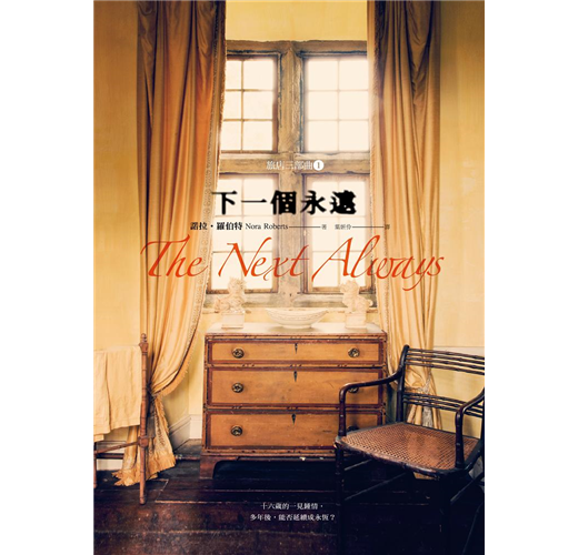 ◎《下一個永遠》為「旅店三部曲」的首部曲,羅伯特利用了真實的場景,創造出三部曲中第一則優美的故事。讀者必將深愛縈繞全書的小鎮居家氛圍、家人與朋友間的親密情誼,還有羅伯特最著名的情愛糾葛。