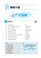 5大章節,收錄23個分類表現、46個和韓國人生活息息相關的主題,完全涵蓋韓國人每天都會用到、也最常用的單字與會話場景!常用表現如:「表現高興、驚訝、肯定、同意、懷疑、後悔......」,場景會話如:「寒暄打招呼、詢問近況、道別、一起去汗蒸房、餐廳吃飯、請求退換貨、辦理存摺、問路、面試、向老闆請假、遲到被老闆責罵、預約掛號.......」篇篇精彩、最貼近生活,想不會都很難!