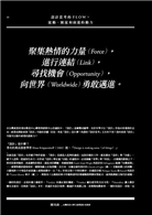 聚集熱情的力量(Force),進行連結(Link),尋找機會(Opportunity),向世界(Worldwide)勇敢邁進