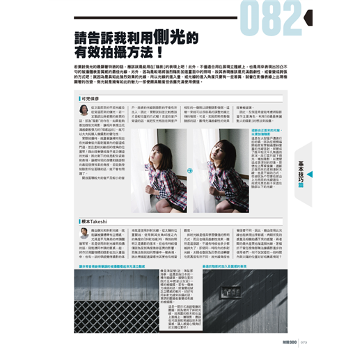 隨著數位單眼相機的普及,讓原本高價的單眼相機變成人人都負擔得起的樂趣。而拜電子化以及網際網路之賜,越來越多的管道可以溝通與交流。原本覺得自己拍得紀念照還不錯,慢慢的會想要拍攝更好的作品,而許許多多的疑問以及瓶頸,就在這個時候產生了。想要拍好作品,就必須瞭解攝影的知識與技巧,本書採用問與答的方式,圖文並茂的解說各種攝影者會有的疑問,加上各種範例讓讀者能夠理解書中的內容,並且還請來許多日本知名攝影師,對於書中的問題提出他們的看法,依照他們的經驗尋求解決之道,讓此書不但在學理上站得住腳,更能融入許多實戰的技巧,讓讀者更能夠輕鬆的理解本書當中的內容,進而運用到拍攝的過程之中,只要擁有本書,並且能夠融會貫通,保證能夠增強您的攝影功力。