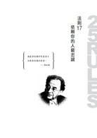這些法則會幫助你認清身邊人的「真實的自我」。自然,本書也不可避免地成為那些試圖操縱這個世界的馬基維利主義者的參考手冊。