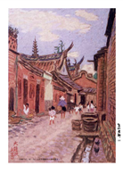 鄉下孩子可以穿梭於田埂,奔跑於草叢,而我卻是在「老街」踱來踱去,貴德街我走過千萬遍,迪化街至少也在小學時代來回走過六年;童年歲月,我並不知道這條歷史街道的歷史故事,但是,我熟悉每一棟建築的造型,山牆、女兒牆、匾額的多采多姿裝飾,也是我繪畫的素材,小時候,我的圖畫是很受到誇讚的。