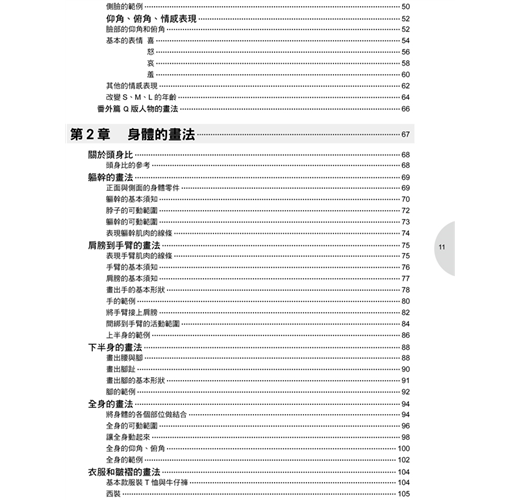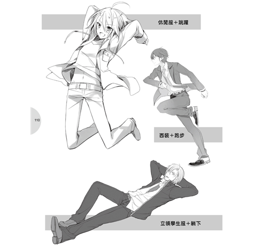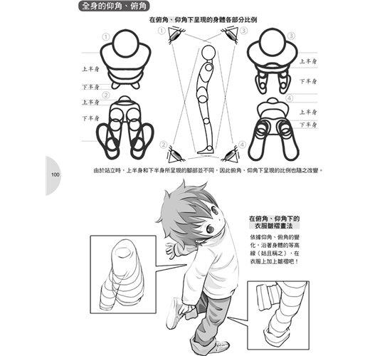至於身體的部份,則是活用「軀幹組件」比較出各種體型的差異,在練習過手、腳等部位的畫法後,再將所有的組件組合起來,就可以完成全身像。
