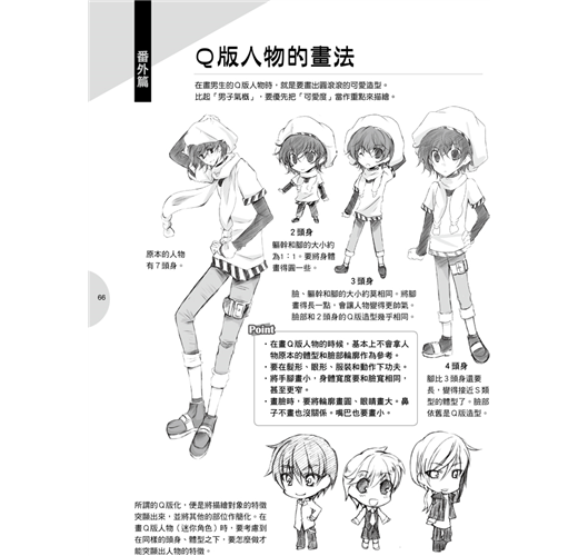 為了能滿足所有人的作畫喜好,我們將男生的身型分為3類。不管你從哪一種身型開始練習都無妨,你也可以活用這3種身型的特色去發揮自己獨創的卡漫角色。