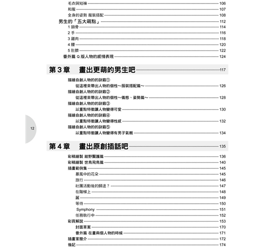 此外,本書還刊載許多出自插畫家之手的彩色插畫創作範例。其中大量刊載各種「萌點」在插畫上的應用與表現方式。畫出「萌點」,才算是真正萌系花美男!請大家從中學習這些繪畫技巧,並作為描繪自創角色的輔助資料。