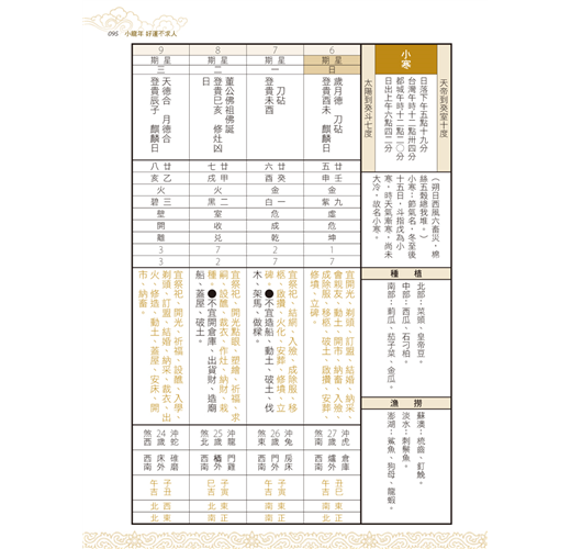 這次詹惟中老師特地為我們做一本精確、實用、容易閱讀的農民曆