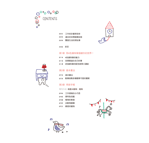 利用4色鋼珠筆在手帳裡畫下你的專屬插圖。
