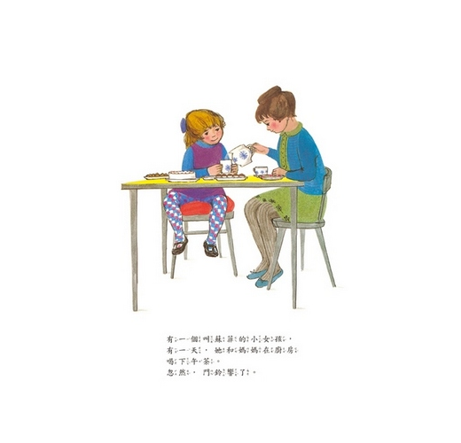 小女孩蘇菲和媽媽正在廚房喝下午茶時,門鈴忽然響了。這個時候來的會是誰呢?