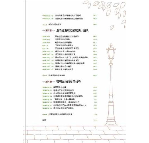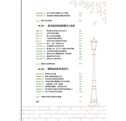 作者以多年時尚記者的經驗,發現一般人對穿著打扮的要求,並非技巧高超的裝扮的經驗傳授,而是一種「恍然大悟」的小提醒、一種可以馬上實行的技巧。藉由本書,她將提出許多關於流行搭配的「腦力小激盪」,分享紐約、巴黎、倫敦等時尚盛地的穿搭趨勢;並透過豐富的時尚插畫,將這些穿搭技巧化為實際的呈現,讓你更清楚掌握最新、最流行的時尚穿搭技巧。