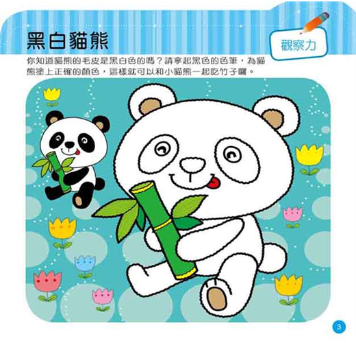 精采豐富多元的綜合練習,奠定3~6歲兒童智能基礎尋找自我的思考,藉由色彩刺激視覺的遊戲。