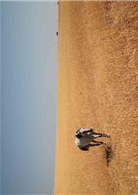 路邊突然出現一大片廣闊的草原,陽光將枯草照得金亮,草地的盡頭和地平線合而為一,將視野一分為二,成為兩塊純淨的湛藍與金黃。一匹白馬從遠方穿過草原朝我們走來,成了金磚上最閃耀的亮點;雖然白馬上沒有王子,自己也不是尚懷著公主夢的少女,但白馬緩緩移動的這一兩分鐘,就彷彿侯孝賢電影中常用的長鏡頭般有種將人凝結的震撼。白馬在我們前方來回走動、吃著草,像是模特兒一樣在我們眼前搔首弄姿;另一頭棕馬沒過多久也悄然出現,兩匹馬用臉相互磨蹭,不曉得彼此交換了什麼秘密?然後,像說好似的頭也不回往遠方奔馳而去,消失在草原的盡頭。