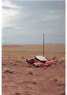 接著是一台一九六六年的火鳥敞蓬,原本灰藍色的車漆因為長途跋涉的污泥沾染,變成一種貌似玳瑁外皮的美麗紋路。車上坐的是兩個女人,望著遠景的眼神中並存著渺茫的不確定感,和堅定不移的決心,也許踏上這段旅程也是她們的宿命?兩人對彼此相視而笑,加足油門往前飛奔,對她們來說,路的那端會是個更好的世界。