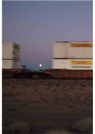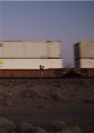 在雙手幾乎沒有移動方向盤的情況下,車子又向前行駛了五十英哩。今日一路伴隨我們的貨運列車無預警地停駐在沙漠中央,柴油引擎仍然發出巨大的喘息聲,像一隻宮崎駿的動畫《風之谷》中藍色眼睛的溫馴王蟲,靜靜等待下次移動的信號。