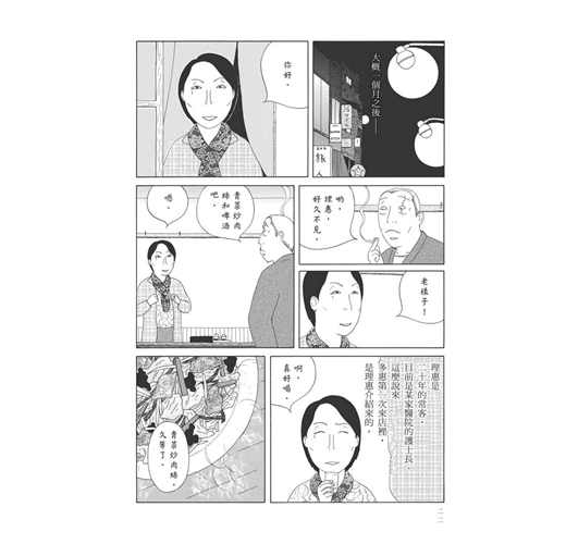 「好生奇妙的一部美食漫畫。淡淡的、靜靜的,澹泊樸素得彷彿未經修飾,然咀嚼間,卻盡是滋味;就好像,書中的料理一樣。引人時而垂涎、時而噙淚,時而,不自覺地淺淺微笑了起來。味蕾與心靈,同覺芬芳甘美。」