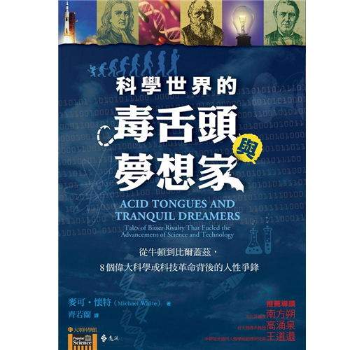 而這本《毒舌頭與夢想家》,談的即是頂級科學家社群的競爭故事。它以八個科學領域及科技上重大的突破為主題,詳細爬梳科學史料,再現它們的競爭態勢。這八個競爭課題分別為:牛頓與萊布尼茲為到底誰發展出微積分纏鬥數十年;拉瓦謝和普利斯特利到底是誰藉著氧氣的發現而奠定了化學的基礎;達爾文與歐文為了演化論的正當性而爭;特斯拉與愛迪生為了奠定電力傳輸而翻臉,最後是特斯拉的交流電打敗了愛迪生的直流電;以及二戰期間,同盟國與軸心國為了製造原子彈而做的競爭與科學家動員;近代參與解開DNA雙螺旋結構之謎的三組科學家之間的競爭;美蘇間的登月競爭,以至最近蓋茲和艾利森為網路電腦和個人電腦而競爭。由於這八大科學領域及科技上的突破都是科學史,甚至文明史上的超級重大事件,這八個競爭故事對理解科學及科技的競爭本質與特性,遂格外讓人在瞠目結舌之餘,對競爭這個議題有了更大的思考空間。因此,這本書已非泛泛的科普著作,而是具有科學史、歷史及社會文化學縱深的科學思想著作。