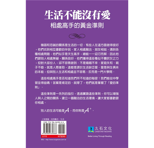 穩固和忠誠的關係是生活的一切。有些人在這方面做得很好,他們找到相互喜歡的伴侶、家人相處融洽、朋友相挺,遇到各種相處問題,他們似乎是天生高手,總能一一迎刃而解。因此他們跟別人相處無礙,關係良好。他們獲得這些看似不費吹灰之力,但對大部份人,卻不容易做到。不是婚姻不幸、家庭失和、親子不睦,就是人際差勁,這都是源於生活缺乏愛。愛是與生俱來的本能,但與別人生活和相處並不容易,反而是一門大學問。