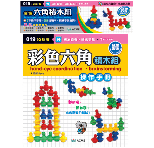 本產品共有120塊六角積木,利用簡單的拼接、組合以及空間立體感的呈現,讓孩子從中體現六大教育功能:1.建立部分整體概念 2.學習組裝拼接技巧 3.增進專注力及耐心 4.啟發圖形想像力 5.訓練手眼協調能力 6.享受自我操作樂趣。