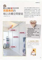 此期封面故事特蒐多種常見形式的衣櫃和因應不同使用者的需求,剖析各路達人們家中的衣櫃設計及收納法,嚴選100種非學不可的衣物收整絕技,完整公開衣物多也能收得巧、衣櫃小也能收得好的妙方!包含挑對衣櫃配件讓系統衣櫃更好用的加分技巧、用平價鉻鐵衣櫥也能打造完美的開放式衣櫃、用收納良品破解木衣櫃常見的空間通病、聰明混搭小箱盒加上超效摺法讓衣櫃收納量激增…等;還要告訴你男生衣服、女生衣服、小孩衣服、以及買不完的配件該怎麼收才最縮減體積,並請收納達人一次破解你對衣物收納的最想問、最常見的疑問困擾,囊括換季整理、空間活用法、最難摺衣物Typex5的收整法…等,全面滿足你對衣櫃使用想了解的所有需求,衣物整理訣竅即刻上手!