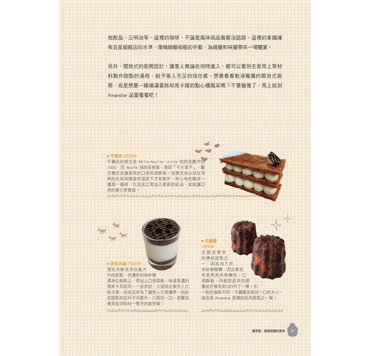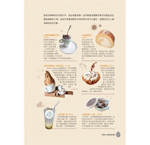 除了推薦最棒的甜點店外,憂傷哈欠及Mingging也為大家準備了名店從未公開的8道私房食譜,每一道都有step by step的超詳細圖解步驟說明,讓你在家就能輕鬆做出人氣點心。包括: