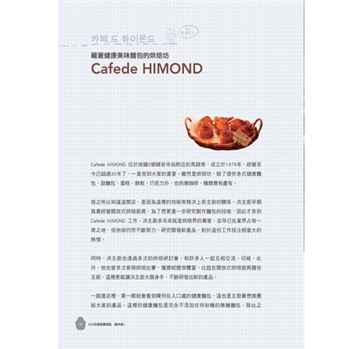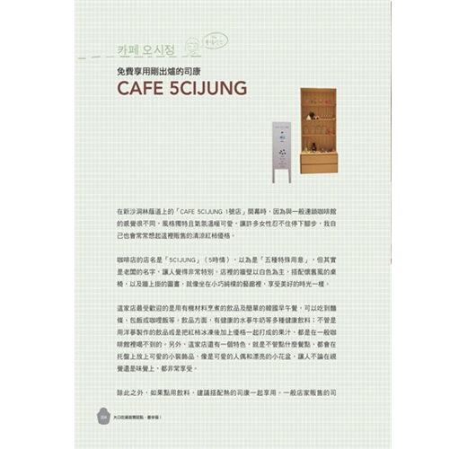 【特色3】最詳盡、最易懂的交通資訊,讓你搭地鐵就能吃遍首爾!不論哪一間店,皆是搭地鐵就能到達,清楚的地址加上地鐵資訊,帶著本書就能吃遍首爾幸福甜點,再加上每一篇都有該店的真實照片,讓你按圖索驥,尋找店家更容易。