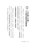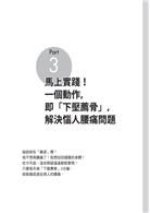 本書作者吉田始史說:「名醫都治不好的腰痛,其實靠自己就可以根治!只需要一個動作『下壓薦骨』,腰痛等各種不適感都會消失!每天3分鐘,不用藥、零花費並且迅速擺脫!」