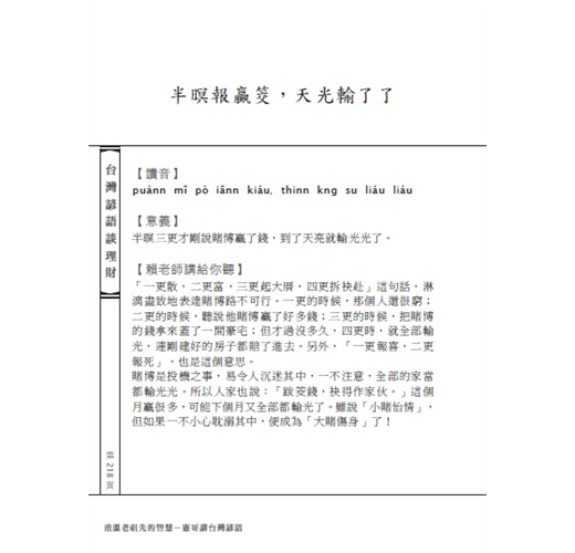 老祖先在:為人處事、應對進退、投資理財、言談舌戰之間,遺留很多智慧的話,轉化成好唸、好聽、又好記的台灣...