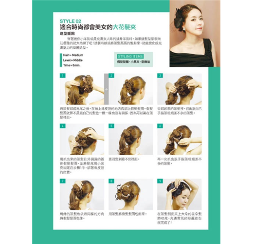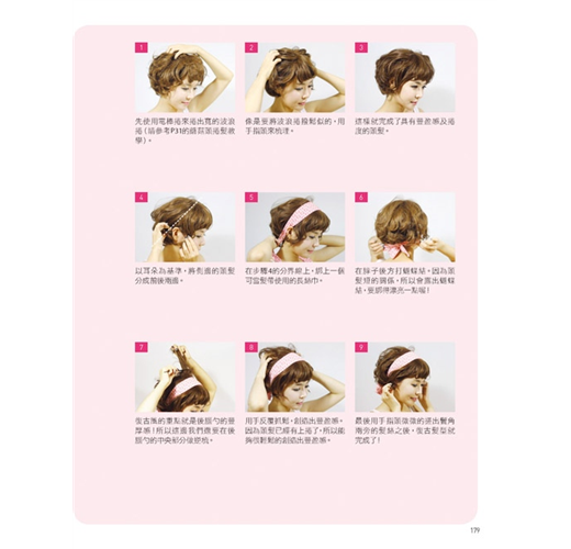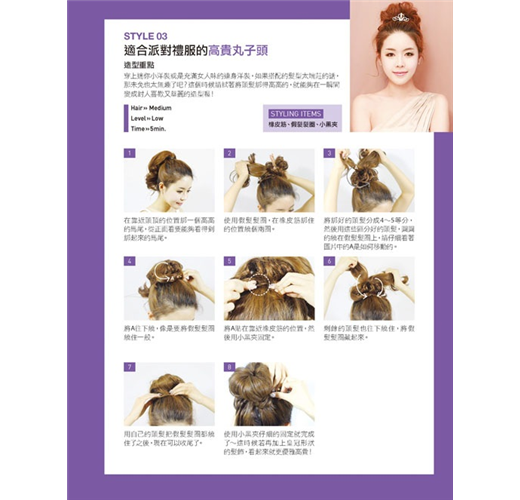 學會編髮工具的使用方式、基本編髮技巧後,本書再依各場合規劃出適合的髮型,同學會、面試、參加婚禮、泳池&海邊……讓你在各種場合都能完美勝出!另外再教你史上最強的編髮應用篇,女神卡卡、少女時代……多種明星髮型大公開,讓你輕鬆打造百變髮型!