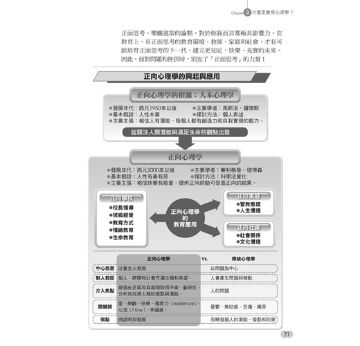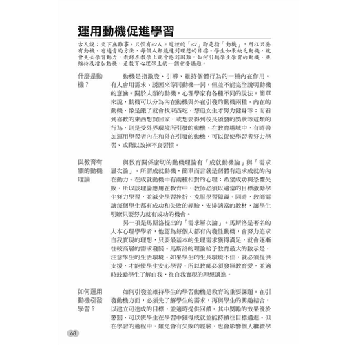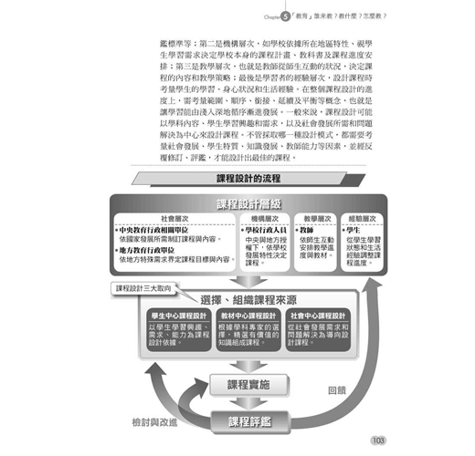 <一>了解教學活動的各種層面:帶領讀者了解整個教學活動的脈絡,明白創造一個美好的學習環境底下,關係到家庭、學校、社會、制度以及各種不同的教學目的,本書提出之中的概念加強說明。