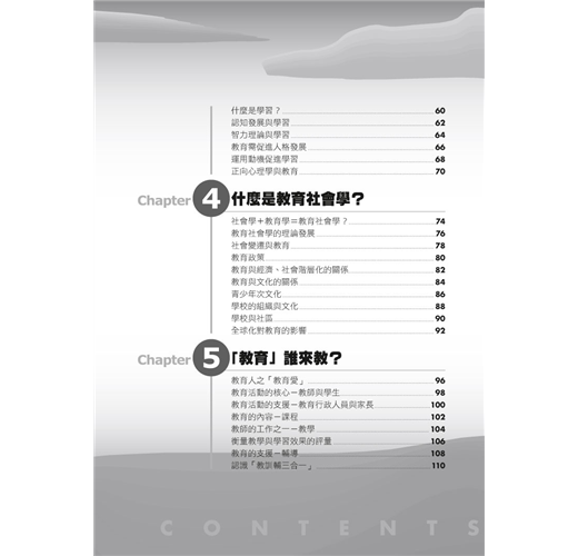 本書內容涵蓋教育理念、教學實務施作、與教育工作運作制度三大面向。從理解基本教育理念及起源開始,分別以哲學、心理學、社會學等不同角度了解教育理念的發展及影響,再結合教學實務時的教育活動核心、支援、課程設計、輔導及評量,加以整合說明。由於教育攸關全民、與國家百年大計,教育體系如何順利且有效運作、制度面如何與時俱進、愈臻完善等教育行政學方面的課題,本書中除了講述行政學的知識理論外,亦加以探討行政和制度層面的概念和問題。