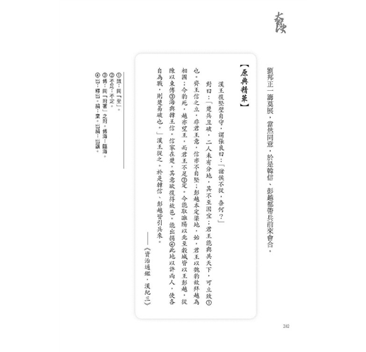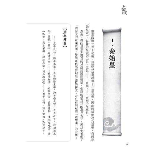 九十二則由人物串起的精采故事,述說你我或許耳熟能詳、卻未能深入解析的歷史橋段,箇中巧妙精髓,透過古文今解,剖析分明。是真假英雄,或是狗熊,一一現形。以古為鏡,以人為鏡,警惕現世,故事讀來更添趣味。此外,文中節錄之【原典精華】,亦有助提升國高中生國語文能力,是年輕學子或意欲提升古文理解能力讀者之絕佳課外讀物。