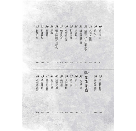 逐鹿天下,實踐「亡秦必楚」,戰績輝煌的西楚霸王項羽何以走進死路;吃悶虧被追著打的漢王劉邦又為何屢逢生機?一個慨嘆「天要亡我」,一個自認身負天命,難道真是天命不可違?而張良、英布、蕭何、韓信、陳平、夏侯嬰、彭越、樊噲、范增、蒯徹、貫高、田橫等謀臣將士,在這齣逐鹿大戲中又扮演著何種關鍵性角色?