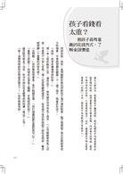 5. 文前附教養情境模擬測驗表:不論你是嚴格虎媽、使命必達的直昇機父母,還是「財」「智」過人的猶太媽媽,都能從中發現自身教養盲點與優點,進而調整腳步,讓親子互動更良好。
