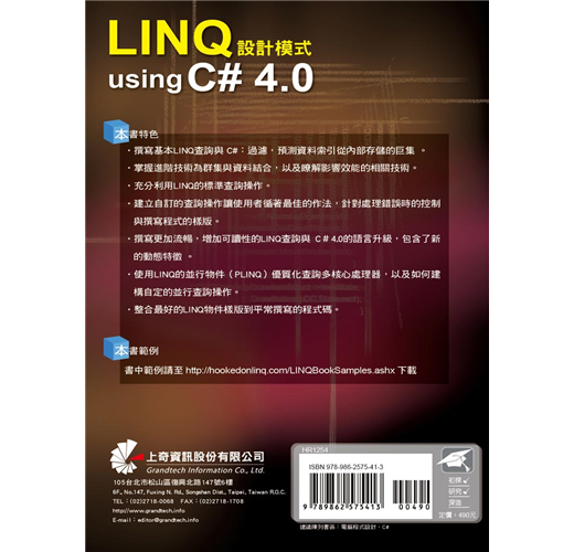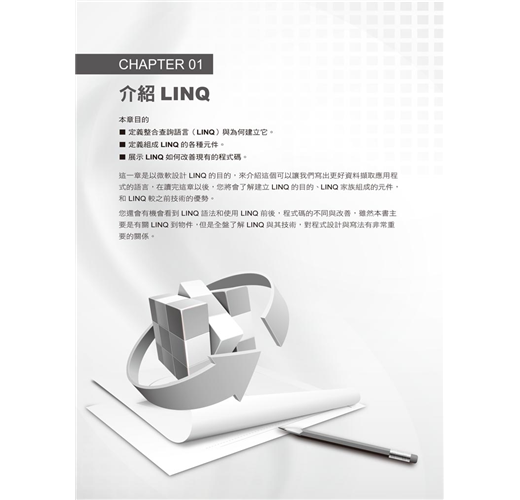 以物件導向程式設計的角度來講述LINQ在OO物件導向的應用與語法,包含XML查詢與資料庫查詢範例,並完整說明LINQ語法在# 3.0與C#4.0的差異性,以簡易的語法教導讀者如何讓程式碼更簡潔精闢。