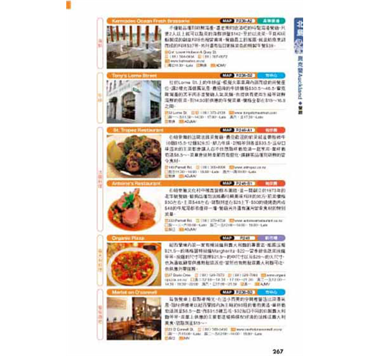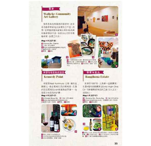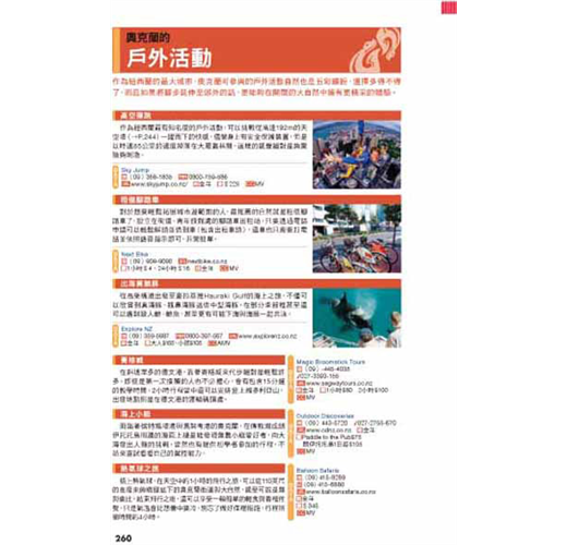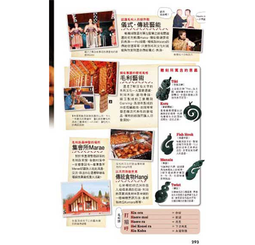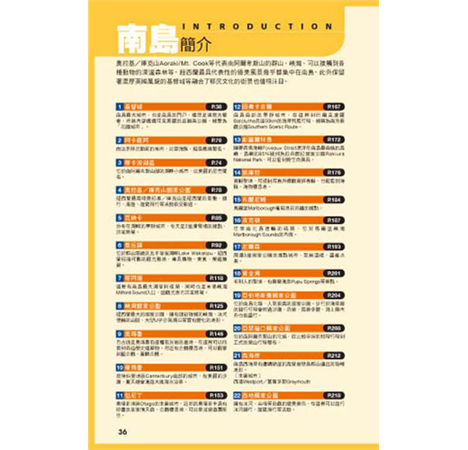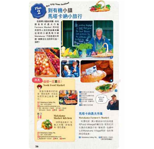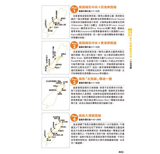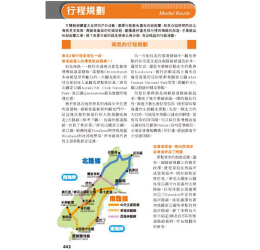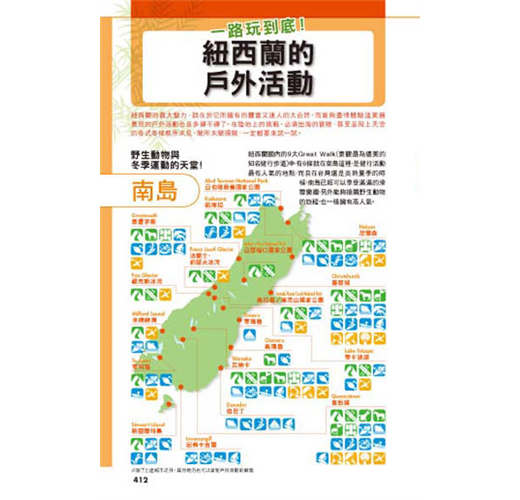 此外文中更穿插冰河小常識、《魔戒》拍攝地哈比村、藍光螢火蟲不可思議的生態、消失的世界化石遺跡等有趣的小專欄,並特別企劃紐西蘭的世界遺產精選、葡萄酒與藝術的懷希基島巡禮、Kiwi美食、紐西蘭特產十大伴手禮等特輯,以及南、北島的行程路線規劃。