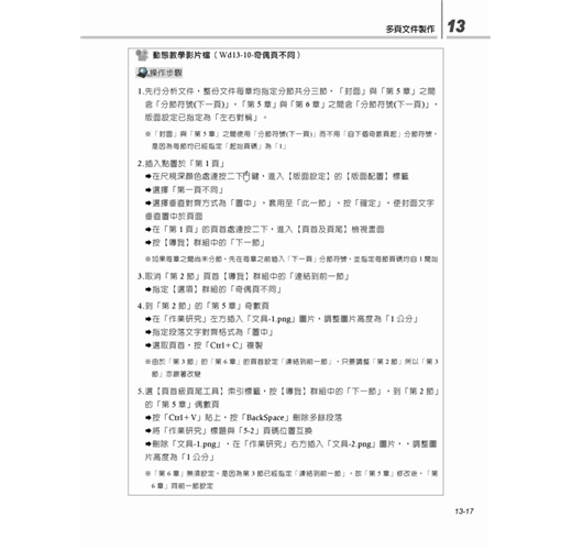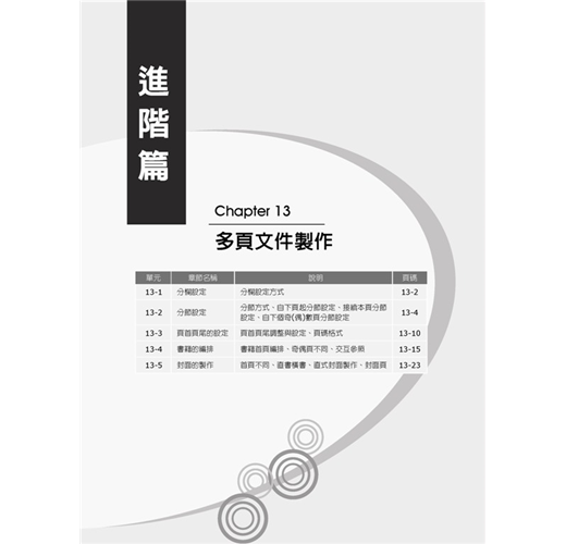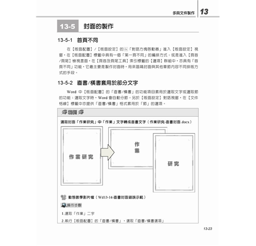 隨書附有動態教學光碟,操作步驟搭配畫面詳細解說,輕鬆又快速地學習。特殊技巧與功能的深入探討,提升您的職場競爭力。圖文並用,以簡捷的文字配合圖形說明,讓讀者更容易操作範例演練與習題解答。藉著這本書,帶領讀者進入Word的另一種境界,輕鬆又快速地學習各種運用技巧。
