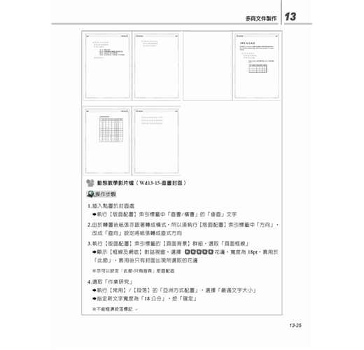 Word 2010特訓教材,是由在產業界及學界均具有豐富教學經驗的楊明玉老師執筆撰寫,其運用「測驗」引導「教學」的模式,讓讀者在解題過程中,亦能學習到最實用的Word 2010軟體技巧。
